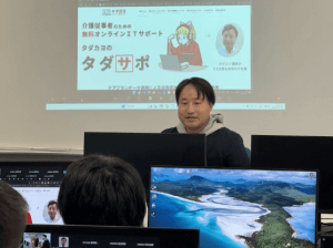 介護事業所のIT活用を支援するNPO法人タダカヨ(所在地:東京都大田区、理事長:佐藤拡史)は、2025年3月15日に大阪介護支援専門員協会の支部長会にて、無料オンラインPCスクール「タダカヨの出張タダスク」を開催しました。 会場でのリアル開催となった本研修には、約70名が参加し、介護現場におけるICT活用の可能性を体験しました。