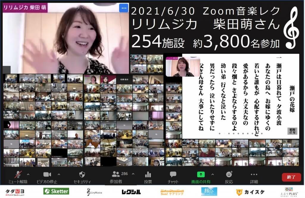 この度、①自粛生活が続く高齢者に楽しみを届けたい、②介護事業所のZoom活用のきっかけを作りたいという想いから、第8回目の無料オンラインレクを開催しました。今回は、オンライン音楽レク開催し、全国254施設、約3,800名の方にご参加頂きました。非営利イベントの趣旨に共感し協力して下さったリリムジカ代表柴田さま、本当にありがとうございました!