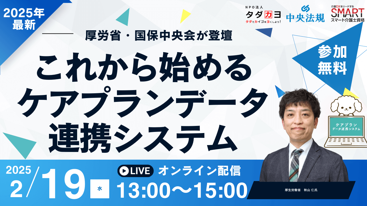 イベント名: 【開催報告】厚労省 秋山氏登壇『これから始めるケアプランデータ連携システム』オンラインイベント