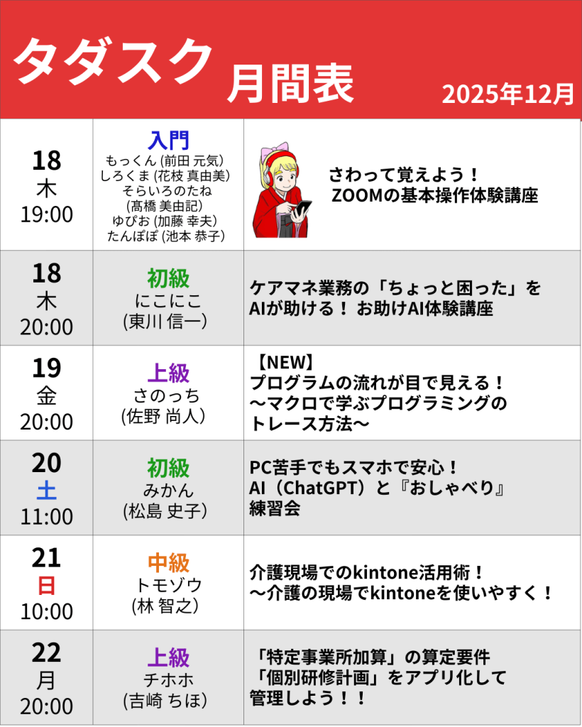 💻 2025年12月 タダスク月間 全体スケジュール