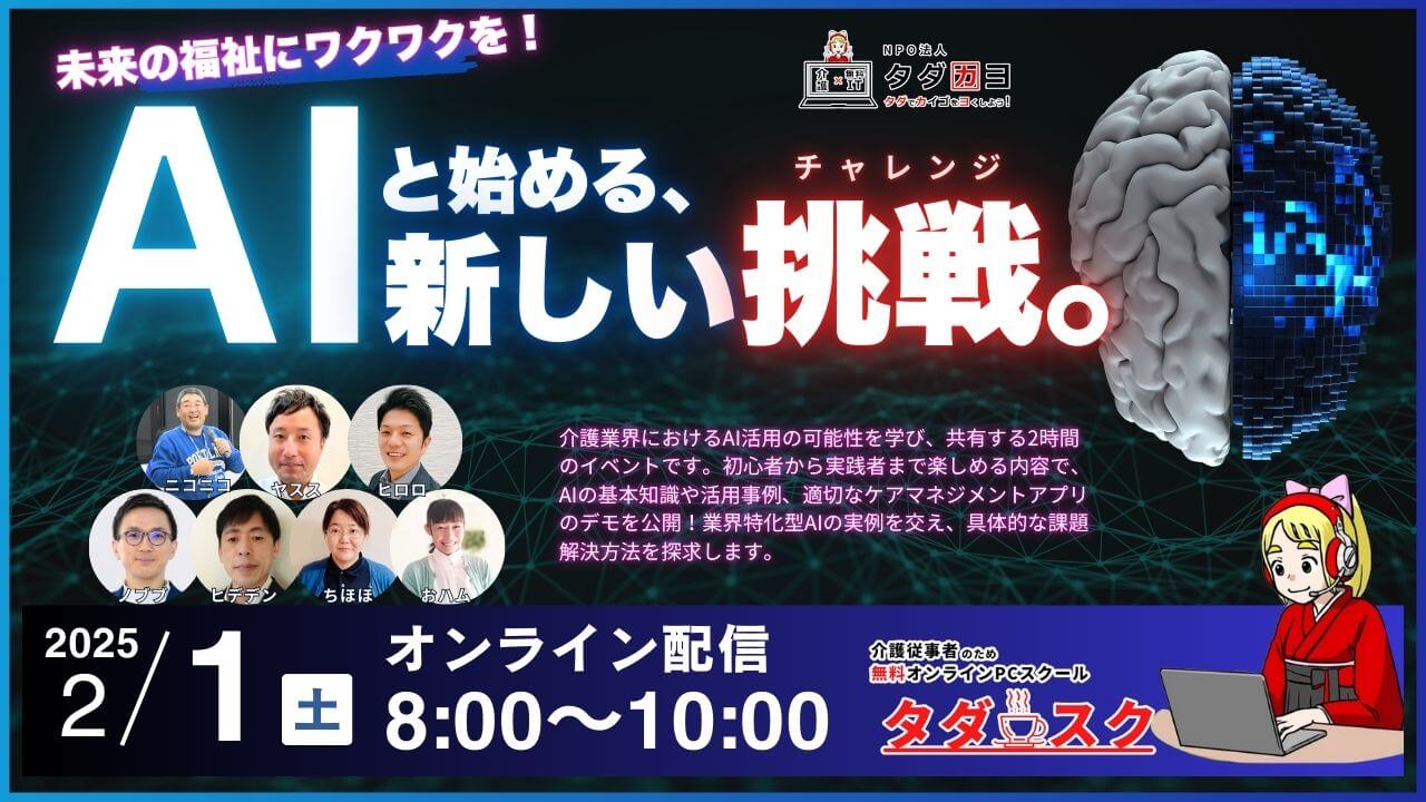 【2/1開催】『未来の福祉にワクワクを!AIと始める新しいチャレンジ』 〜タダスクAI祭りvol.1〜