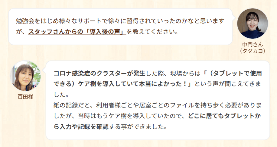 タダカヨメンバーが、介護ソフト「ケア樹」のユーザー様インタビュー記事をお手伝いしました!
