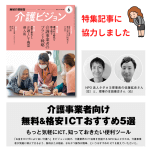 2022年6月11日 / 最終更新日 : 2025年12月4日 千恵子中門 お知らせ・活動報告 6/4 『介護ビジョン6月号』の特集記事にNPO法人タダカヨが協力しました. 介護ビジョン6月号「介護事業者向け無料&格安ICTお勧め5選」という特集記事において、NPO法人タダカヨが情報提供させて頂きました! お金のかからないITに注目して下さった日本医療経営様に、心から感謝いたします。 今後も […]