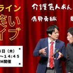 2021年1月23日 / 最終更新日 : 2025年12月4日 ヒロス タダレク:無料オンラインレク <受付終了>【2/18開催】無料オンラインお笑いライブ 介護芸人 あんぽんたん(鹿見勇輔氏 新藤正啓氏) 新型コロナウイルスの第3波が猛威を振るう中、高齢者の命と生活を守るために働かれている医療介護従事者の皆様に心から感謝を申しあげます。 この度、自粛生活を余儀なくされている皆さまにお楽しみ頂けたらという想いから、オンライン […]