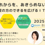 2025年9月3日 / 最終更新日 : 2025年12月4日 ヒロロ 8時だョタダスク集合! 【9/28開催】「これからをあきらめない」~認知症の方の『できる』を広げるIT活用術~ ~8時だョタダスク集合!~ 認知症の方にも“できる”を。寄り添いケアを支える介護テック最前線 今回のテーマは、「これからをあきらめない」在宅介護の未来を見据えたICT活用術をテーマをに届けします。 ゲストに、話せる伝言板「ケアびー」の開発者であるH […]