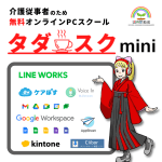 2022年3月10日 / 最終更新日 : 2025年12月4日 ヒロス タダスク:無料オンラインスクール 受付終了【3/28,29,31開催】ケアマネジャーのためのLINE WORKS活用セミナー 昨今、新型コロナウイルス流行や令和3年度介護報酬改定をきっかけに、ICT化を進める介護事業所が増加しています。 そのような中、居宅介護支援事業所や地域包括支援センターでは、ICT導入の第一歩として、ITが苦手な方でもカン […]