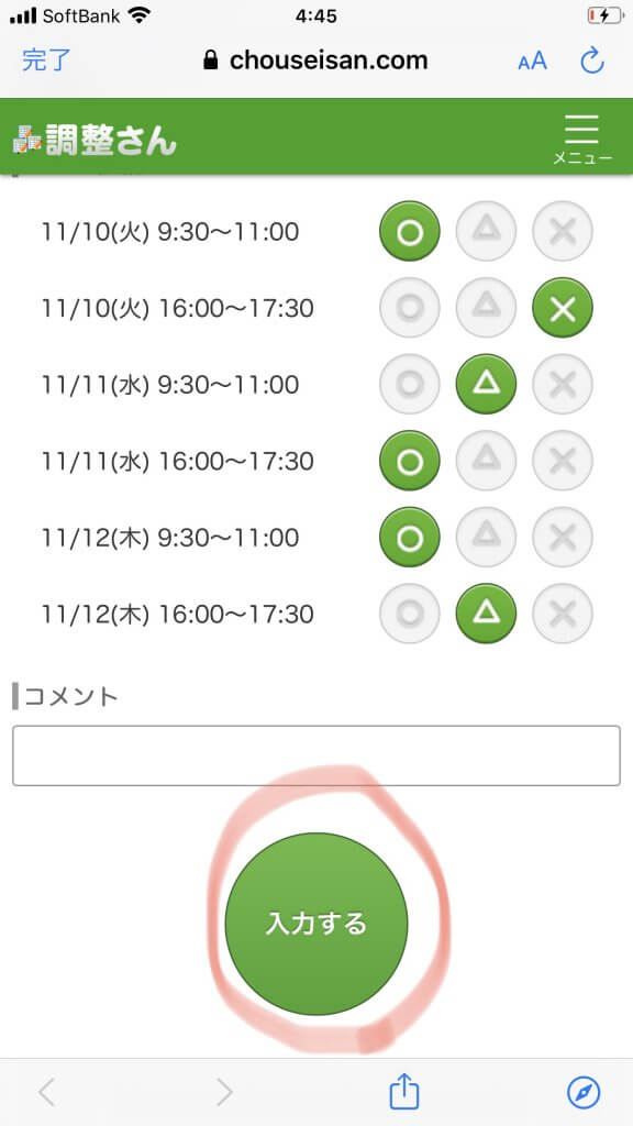 ④「入力する」をタップする。= 完了!