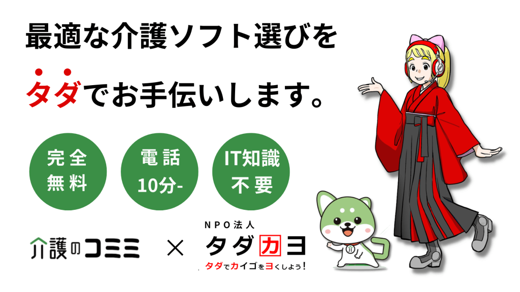 【受付開始】最適な介護ソフト選びを”タダ”でお手伝いします(介護のコミミ × NPO法人タダカヨ)