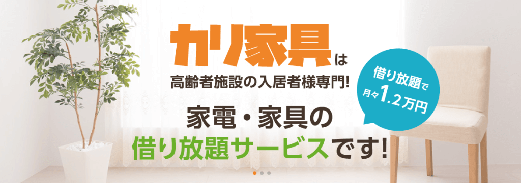 カリ家具とは、高齢者施設の入所者専門の定額借り放題、家電・家具レンタルサービスです。