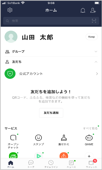 2.画面上部の検索ボックスを押して、「ライン」と入力し、検索する。