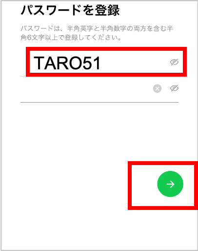 13.任意のパスワードを入力し、「→」を押す。