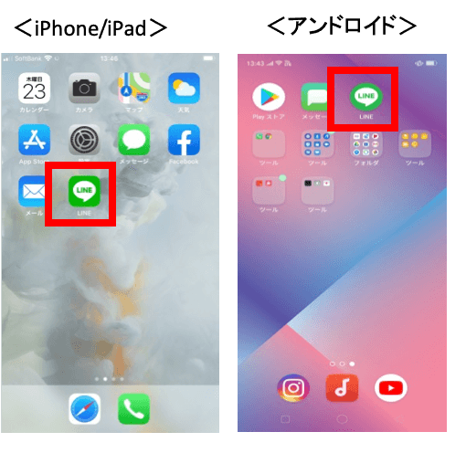 1.面会に使用するタブレットもしくはスマホにラインをインストールして、起動する。