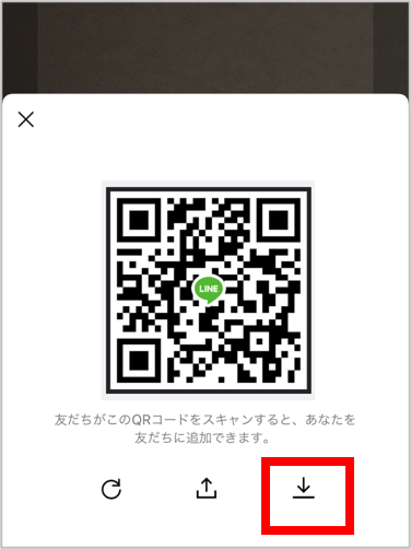 5.右下のダウンロードマークを押す。そうすると写真アプリにQRコードが保管される。