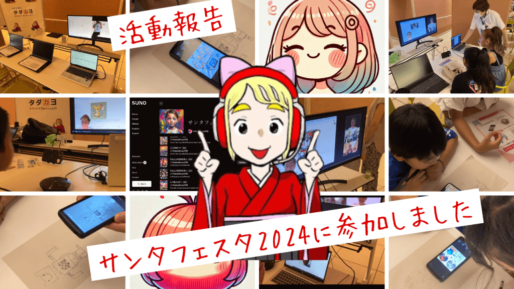 2024年8月18日(日)、社会福祉法人善光会様が主催する「夏祭り サンタフェスタ2024」において、NPO法人タダカヨは「Let’s AI presented by タダカヨ」のブースを担当いたしました。コンセプトは「AIを使ってできる楽しいことを、Zoomを通じて子供たちに体験してもらいたい」。このイベントでは、国内の介護事業所として初めて⁈、地域の皆様を対象に生成AIを活用したお絵描き・作曲体験会を実施し、地域の子どもたちやそのご家族にAIの魅力を存分に体感していただきました。