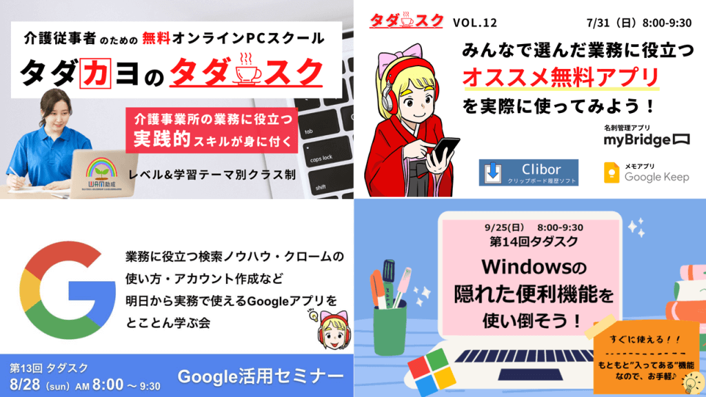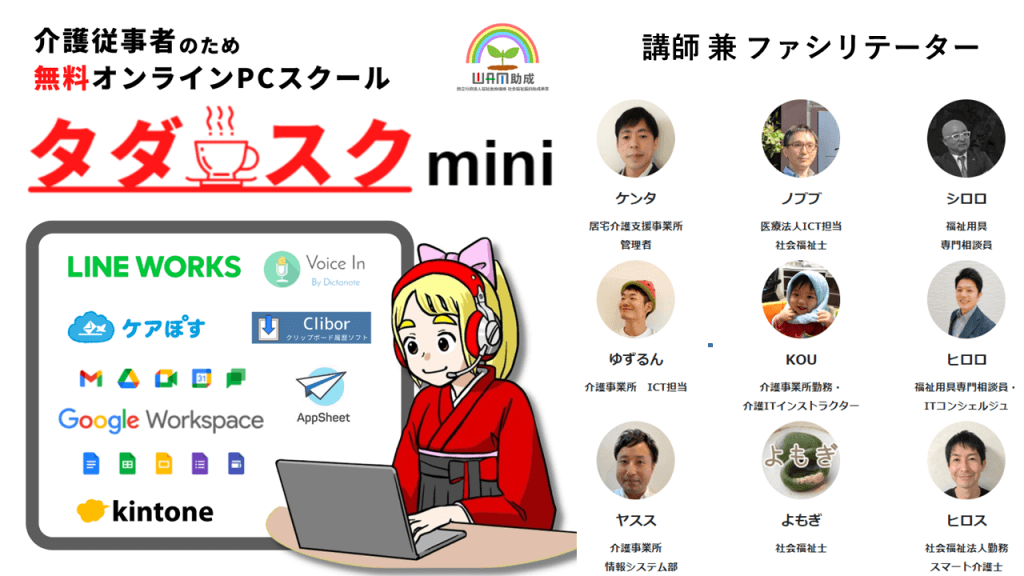 「介護従事者に実践的なICTスキルを届けたい!」という想いから始めた無料オンラインPCスクール「タダスク」。