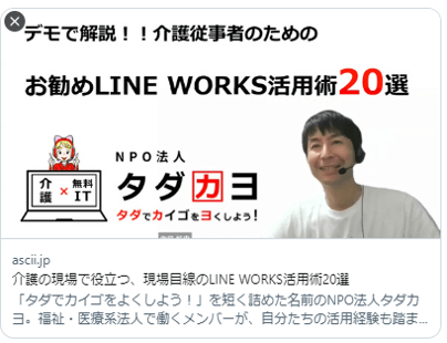 ワークスモバイルジャパン様が主催する「介護と医療の新常識学びウィーク」において、NPO法人タダカヨ理事5名がビデオ登壇させて頂きました。