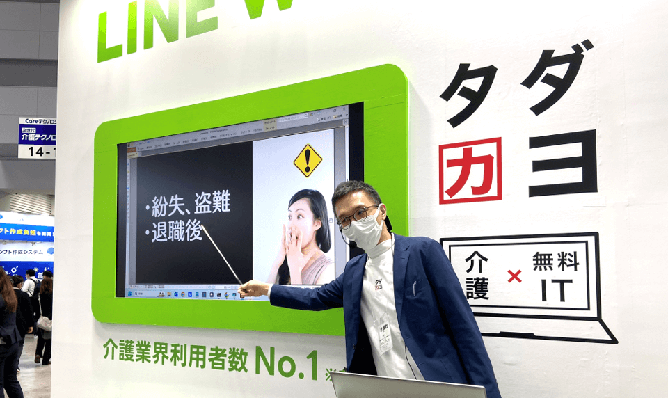 3月に東京ビッグサイトで開催したケアテック東京で、LINE WORKS様のブースでミニセミナーを開催しました。