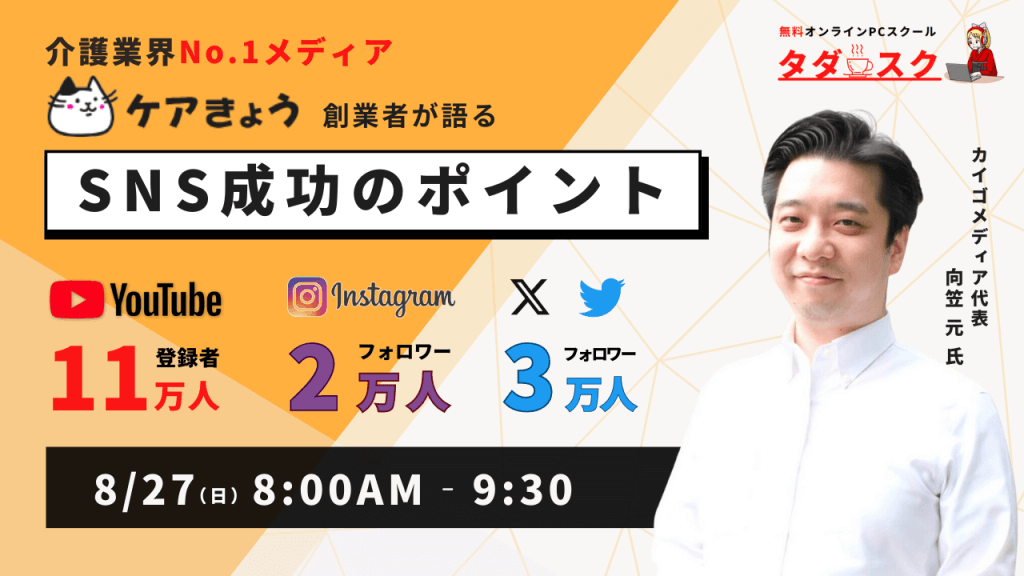 【8/27開催】介護業界No.1メディア!ケアきょう創業者が語る「SNS成功のポイント」