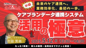 4/9(水)13:30(中級)【NEW】ケアプランデータ連携システム導入・活用研修 介護現場の負担を軽減し、業務を効率化!(ツクツク) 「月末月初がバタバタ…」ケアプランデータ連携システム導入・活用研修:ケアプランデータ連携システムの導入手順から活用事例、実務的な情報までを解説し、業務効率化を支援しました。