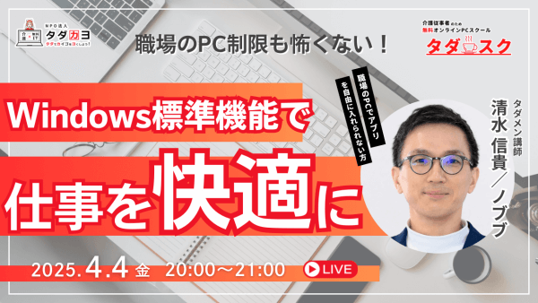 講義:4/10(木)14:00(初級)【NEW】WindowsPC入力作業の時短と負担を軽減 ショートカット&単語登録の活用方法