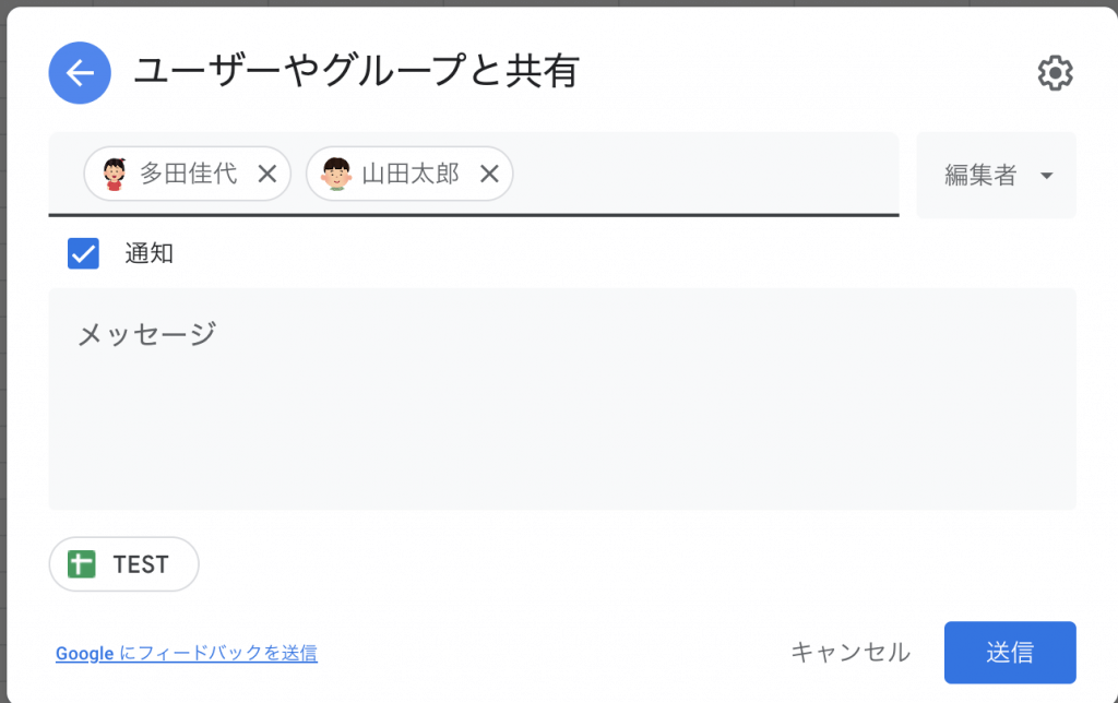 相手には「閲覧可」「コメント可」「編集可」という具合に権限も自由に設定できますので共有する相手に合わせてアクセスレベルを自由に設定することができます。