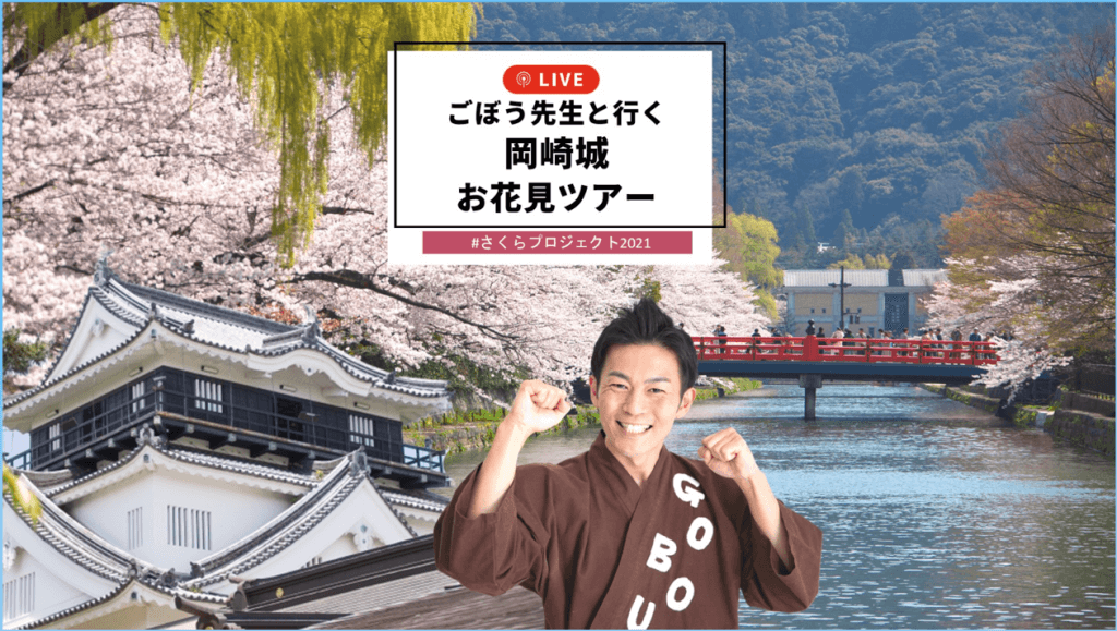 4/5には、介護体操で有名なごぼう先生がリポーターとして愛知県岡崎城よりオンラインツアーをお届けします。