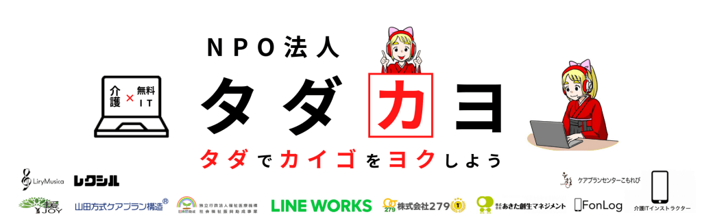 NPO法人タダカヨは「タダでカイゴをヨクする」非営利活動行っています。