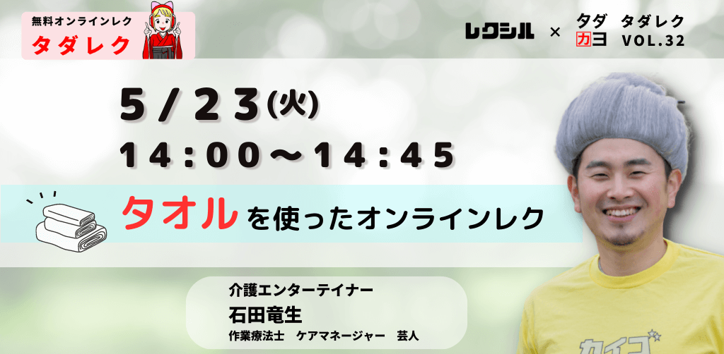受付終了【5/23開催】”タオル”を使った体操レク by 介護エンターテイナー石田竜生様  タダレクVol.32