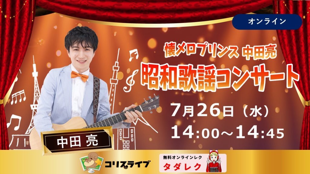 受付終了【7/26開催】中田亮さまの昭和歌謡コンサート タダレクVol.36
