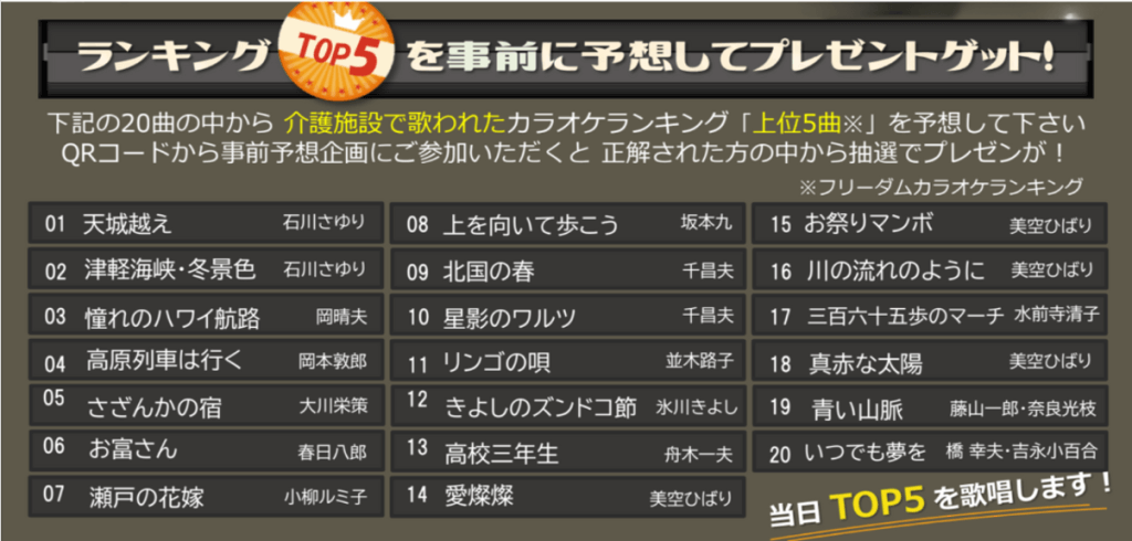 【事前企画】介護施設のカラオケ人気曲を予想しよう!(プレゼント有)