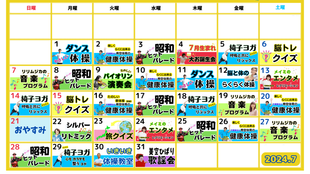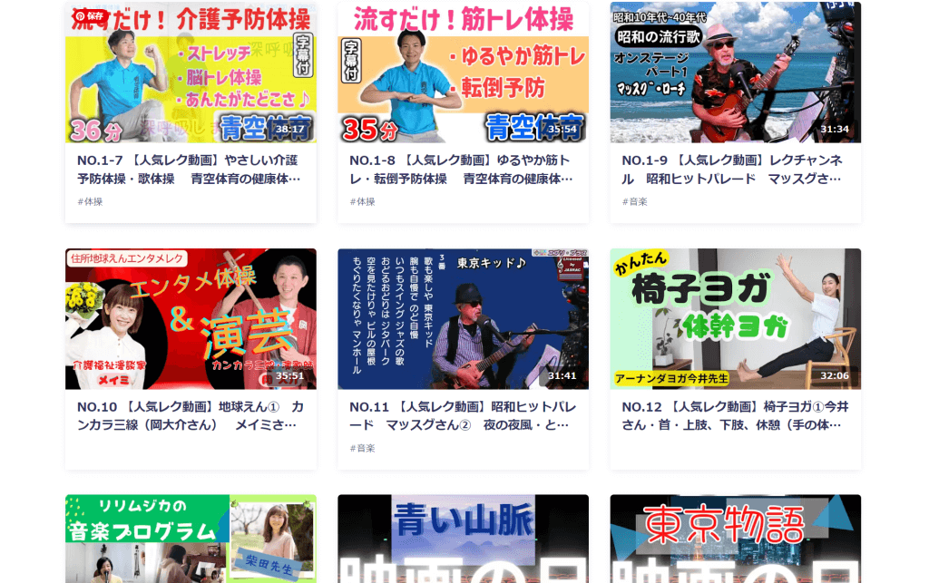 オンライン配信だから場所を選ばず人気レク講師による音楽や体操などのレクリエーションをお楽しみいただけます。