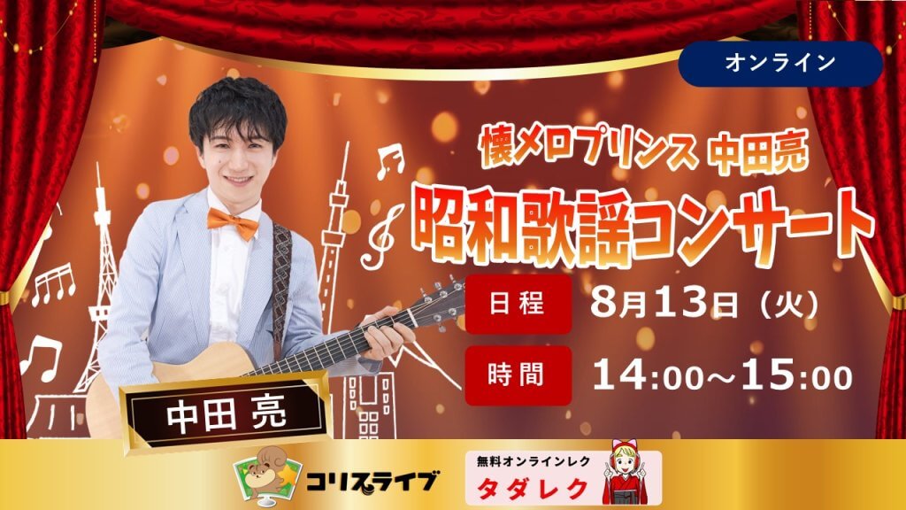 受付終了【8/13開催】中田亮の昭和歌謡コンサート~タダレクVol.53~