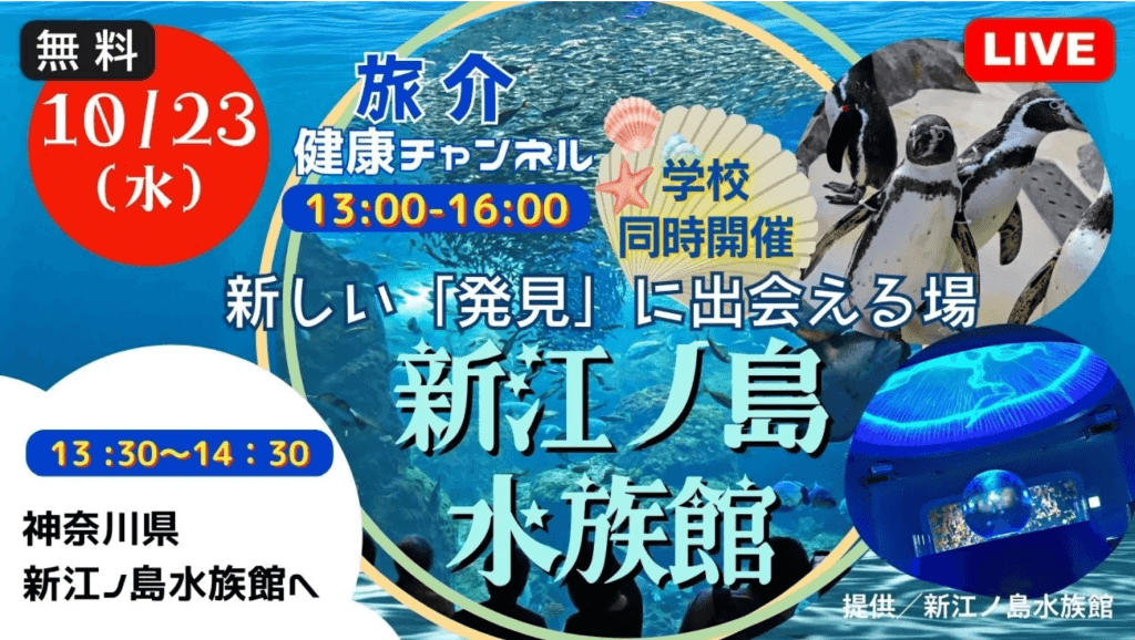 受付終了【10/23 開催】旅介【生中継】 <学校同時開催>新しい「発見」に出会える場 新江ノ島水族館(健康チャンネル)~タダレクvol.58~