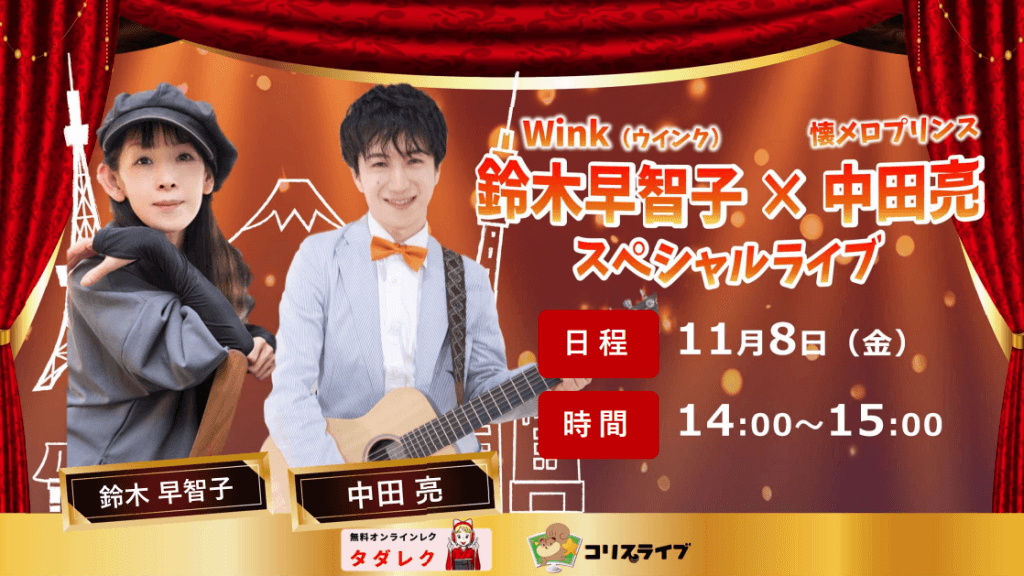 Wink 鈴木早智子さんと中田亮がスペシャルライブをお届けいたします。