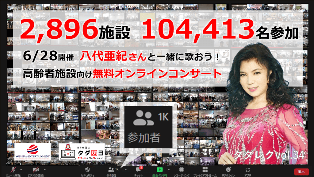 NPO法人タダカヨは、全国のご高齢者に楽しみを届けたいという想いから、無料オンラインレクイベント「タダレク」を毎月開催しています。
