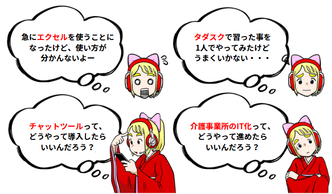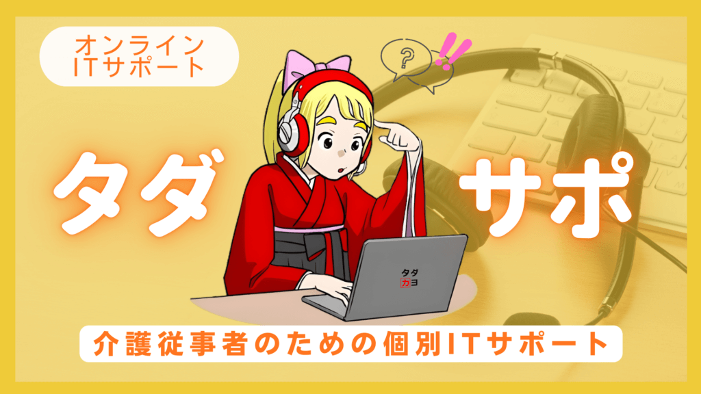 NPO法人タダカヨは、職場をIT化しようと頑張っている介護従事者を応援したいという想いから、無料のオンラインITサポート「タダサポ」を行っています。