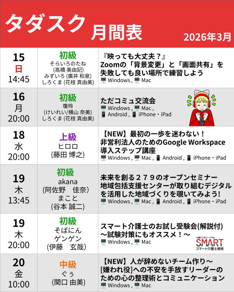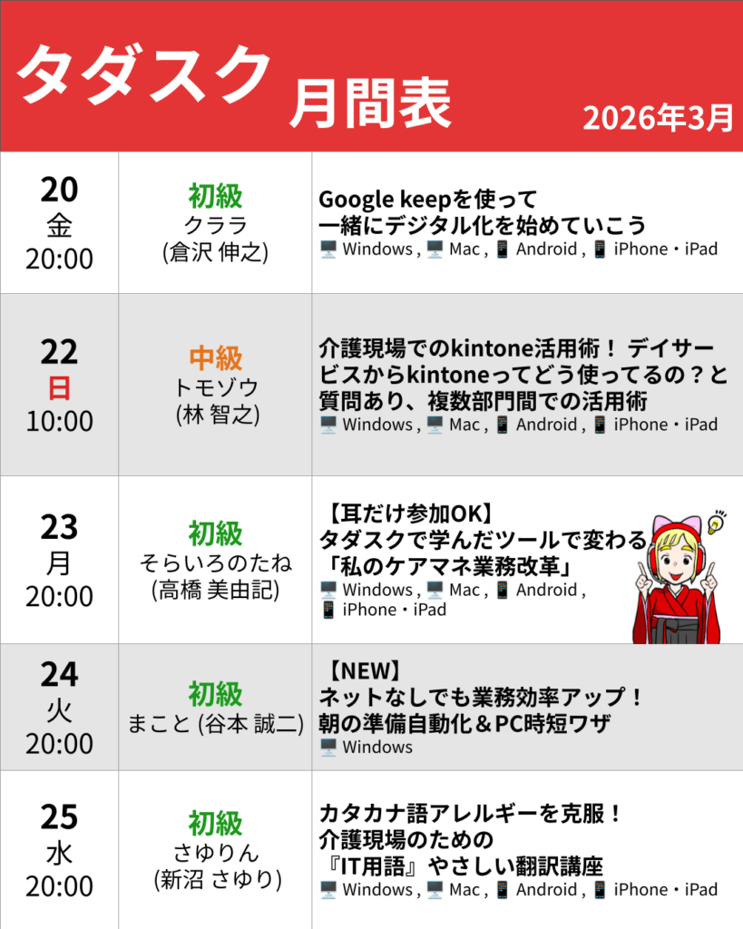 3/24 (火)ネットなしでも業務効率アップ!朝の準備自動化&PC時短ワザ(講師:まこと)