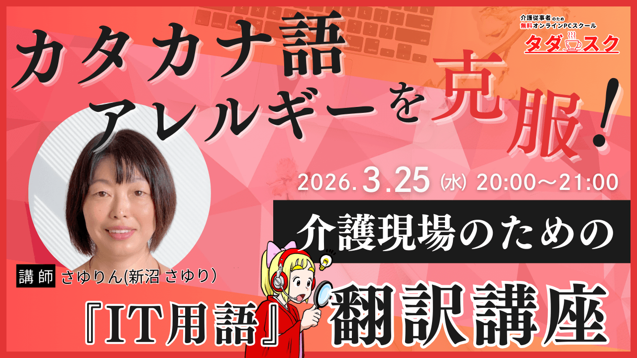 3/25(水)カタカナ語アレルギーを克服! 介護現場のための『IT用語』やさしい翻訳講座(講師:さゆりん)