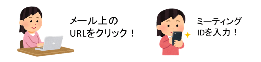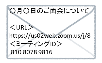 ③面会希望者は、予約した日時に、メール本文上のURLもしくはミーティングIDを使って、「オンライン面会用バーチャルミーティングルーム」に入室する。
