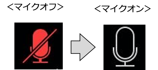 【対応策】 左下のマイクマークがミュート状態(赤)になっていないか確認して下さい。マイクマークを押すと、オンとオフが切り替わります。