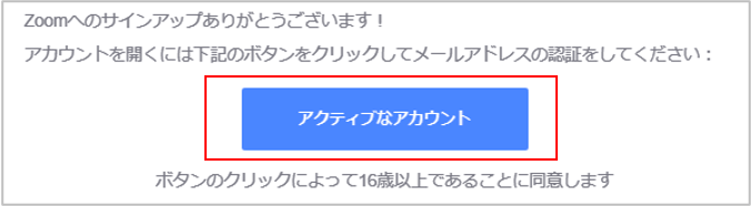 4.2で入力したアドレスにメールが届いているので、メール本文上の「アクティブなアカウント」をクリックする。