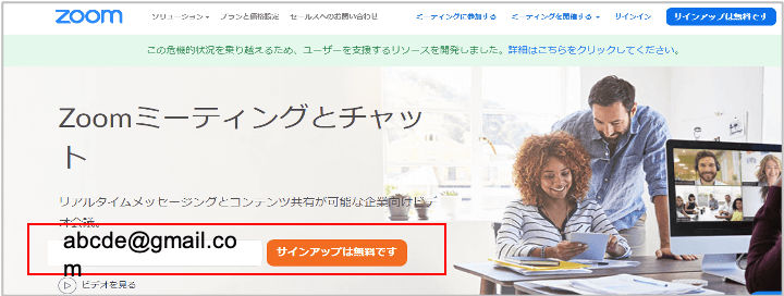 2.メールアドレスを入力し、「サインアップは無料です」をクリックする。