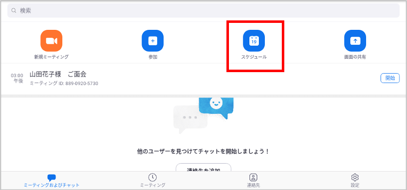 4.「スケジュール」を押す。何かメッセージが出た場合は、原則「了解」「許可」「OK」を選ぶ。