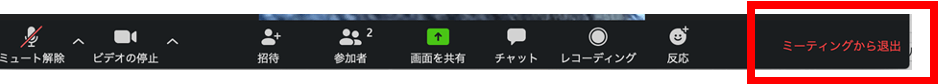 メニューバーの「ミーティングから退出」または「終了」を押す。